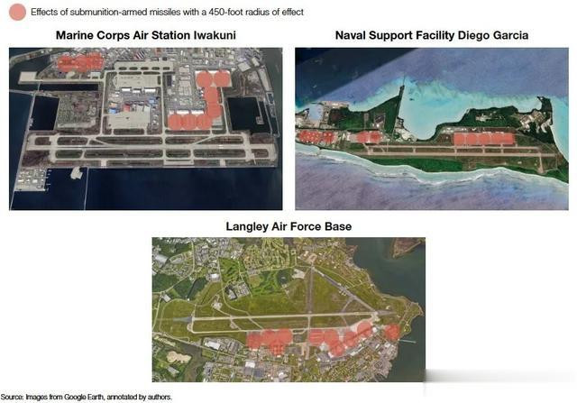 今年1月,美国哈德逊研究所发布了一份名为:《水泥天空:加固西太平洋地区的空军基地》的报告,强调建造新型加固机库能有效保护美国在西太平洋地区的军事基地,并消耗敌人更多资源。报告认为,在目前情况下,10枚导弹就能够摧毁美军在迪戈加西亚基地、美军在弗吉尼亚州的兰利基地或驻日美军岩国基地等地露天停放的所有飞机以及关键的燃料储存设施。