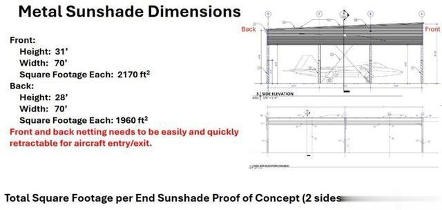 美空军兰利空军基地发布的RFI中提及的遮阳式掩体,这些掩体还需要配合反无人机网。
